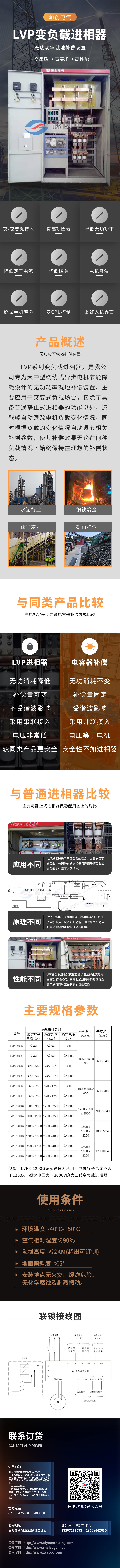 LVP系列變負載進相器,是我公司專為大中型繞線式異步電機節(jié)能降耗設計的無功功率就地補償裝置,主要應用于突變式負載場合,它除了具備普通靜止式進相器的功能以外,還能夠自動跟蹤電機負載變化情況,同時根據(jù)負載的變化情況自動調節(jié)相關補償參數(shù),使其補償效果無論在何種負載情況下始終保持在理想的補償狀態(tài)。