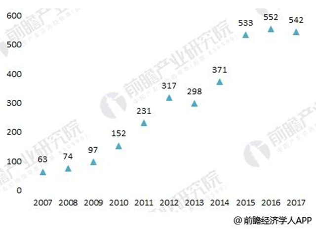 圖表3:2007-2017年低壓配電柜行業(yè)相關(guān)專利申請數(shù)量變化圖(單位:項)
