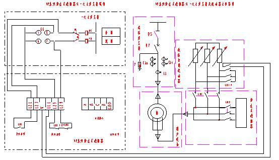 開關柜相互聯(lián)鎖,進相器不合閘時KM1不吸合,主機不能起動;如果進相器出了故障,則CPU能自動發(fā)出退相指令使進相器退相,當轉換機構出現(xiàn)故障,則進相器內的KM1、KM2就會出現(xiàn)吸合或同時斷開的現(xiàn)象,此時通過KM1、KM2常閉觸點串聯(lián)后并入電機一次開關柜的分閘回路中,通過聯(lián)鎖使一次柜分閘。