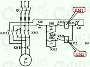 但是這種控制電路有個缺點(diǎn),就是在正轉(zhuǎn)過程中要求反轉(zhuǎn),必須先按停止按鈕SB3,讓聯(lián)鎖觸頭KM1閉合后,才能按反轉(zhuǎn)起動按鈕使電動機(jī)反轉(zhuǎn)。這給操作帶來不便。